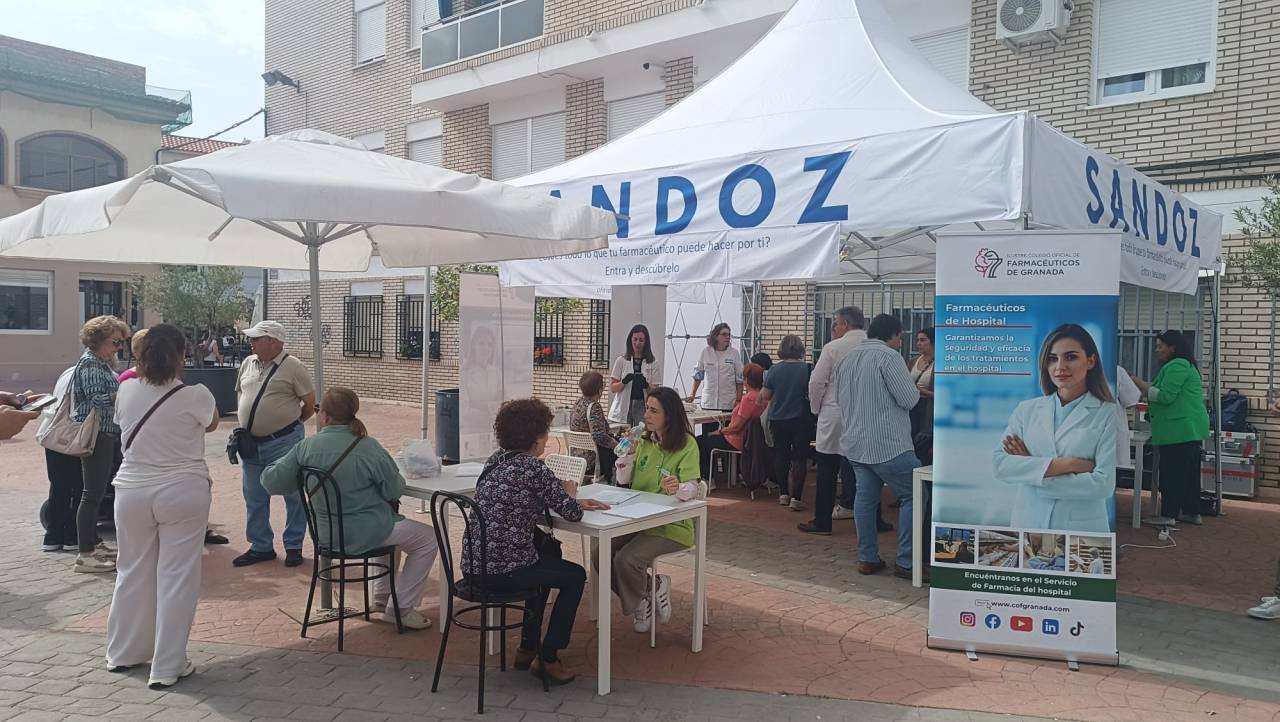 La plaza Pablo Iglesias de Salobreña ha acogido este martes la Carpa de la Salud, una iniciativa, como ya avanzamos ayer, organizada por el Ilustre Colegio de Farmacéuticos de Granada con la colaboración de Sandoz, que ha permitido a los vecinos someterse a diversas pruebas gratuitas y recibir asesoramiento sanitario personalizado. En las dos primeras horas, cerca de 40 personas ya habían sido atendidas, con una afluencia constante durante toda la mañana.