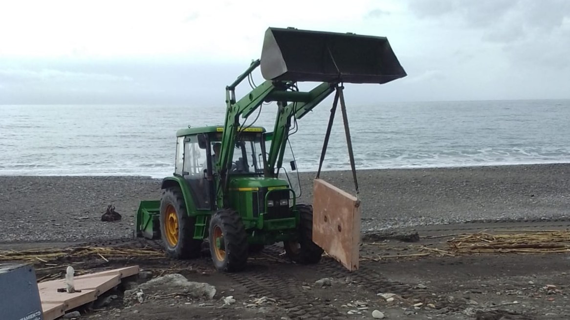 Según han explicado desde la Concejalía de Playas del Ayuntamiento de Salobreña, los trabajos gruesos que han comenzado hoy consisten en la retirada del módulo de aseos que acabó casi dentro del mar a la altura de Salomar 2000, en cuyo entorno se recuperaron también diversos restos metálicos del fondo marino. También se están retirando los módulos de pasarelas de hormigón que han resultado dañados, mientras que en los casos en que son recuperables se están reacomodando.
