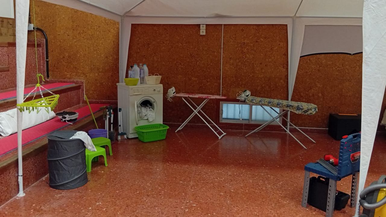La instalación, ubicada en el salón de actos del colegio, está equipada con diferentes utensilios domésticos como mesas, electrodomésticos o elementos de cocina, muchos de ellos donados por las propias familias y por el AMPA Martín Recuerda. “Durante todo el año las familias y el AMPA van recopilando materiales: si ven una mesa o un frigorífico que ya no se usa, lo guardan para la casita”, ha explicado Armada.